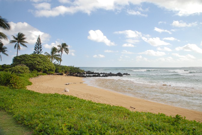 walking distance from the Coconut Marketplace in Kapaa, Kauai. These condos have a full kitchen and the rooms are very spacious, with a nice secluded beach at the bottom of the property.