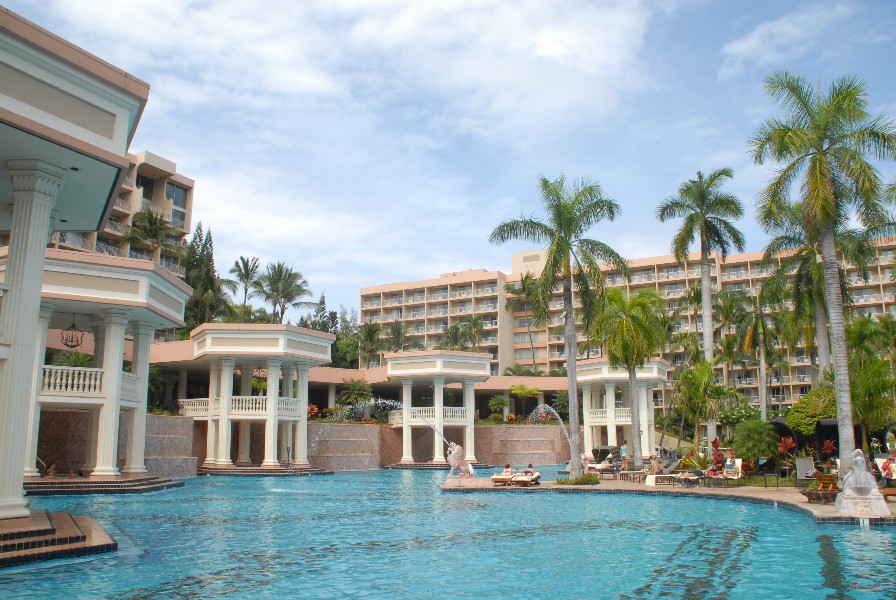 The swimming pool at the hotel is very large, with several jaccuzzi baths to enjoy, a short walk to the beach, and with golf course on property.