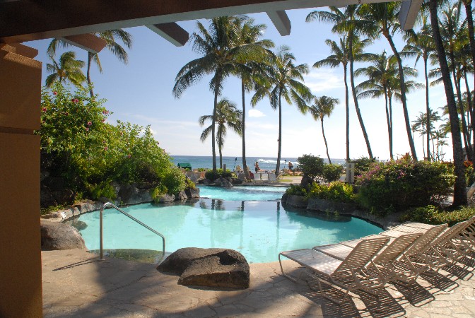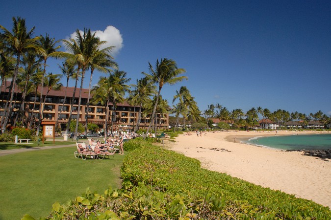in Poipu, with a lovely beach right by the hotel.
