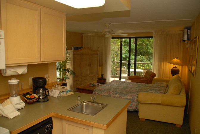 The room rates are very reasonable, especially for Princeville! Rooms have hide-a-beds, which are not quite as comfortable as real beds,