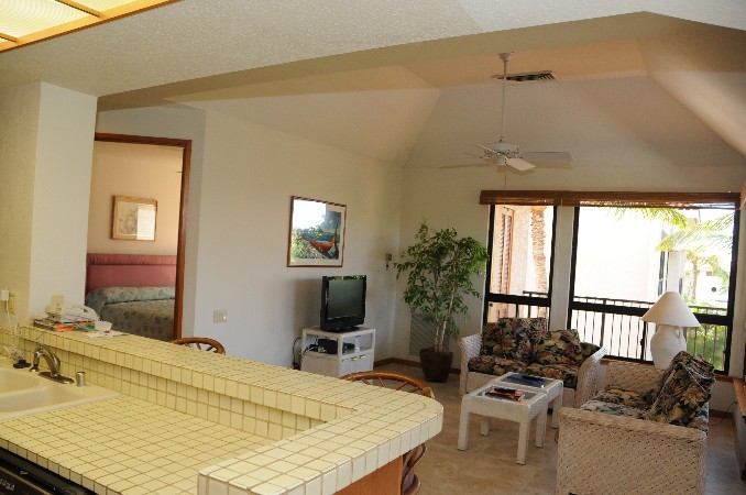 in the Waikoloa Resort & Golf Course area north of Kona. Condos have much more space than hotel rooms, with a bedroom, living room, kitchen, and balcony. Much more comfortable for longer stays, and you can cook healthy and inexpensive meals in your room.