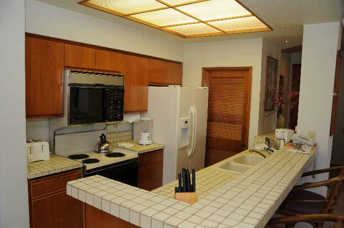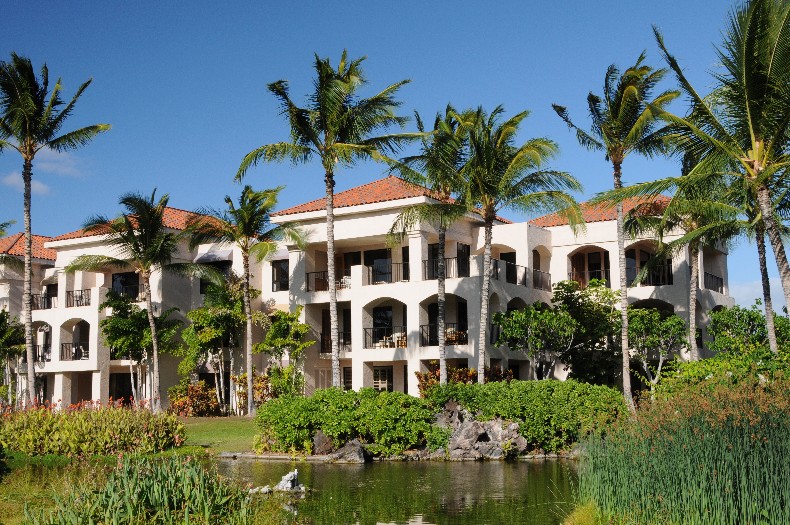 in the Waikoloa Resort & Golf Course area north of Kona. Condos have much more space than hotel rooms, with a bedroom, living room, kitchen, and balcony. Much more comfortable for longer stays, and you can cook healthy and inexpensive meals in your room.